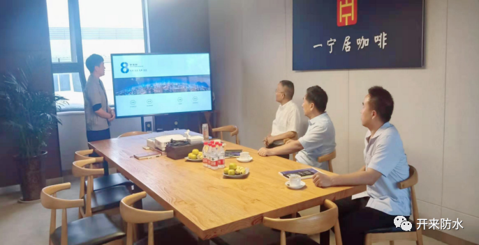 王洋云經(jīng)理匯報(bào)了開(kāi)來(lái)濕克威企業(yè)文化、開(kāi)來(lái)、濕克威、樂(lè)活、一寧四大品牌、16大特色產(chǎn)品及國(guó)內(nèi)外典型工程;開(kāi)來(lái)濕克威具有一級(jí)防水保溫防腐資質(zhì),從1993年在上海創(chuàng)辦以來(lái)累計(jì)施工項(xiàng)目30000多個(gè),專利29項(xiàng),參與編制修訂國(guó)家、省級(jí)標(biāo)準(zhǔn)30多項(xiàng),是一家集防水材料生產(chǎn)、銷(xiāo)售、施工及技術(shù)服務(wù)的專業(yè)防水系統(tǒng)提供商。