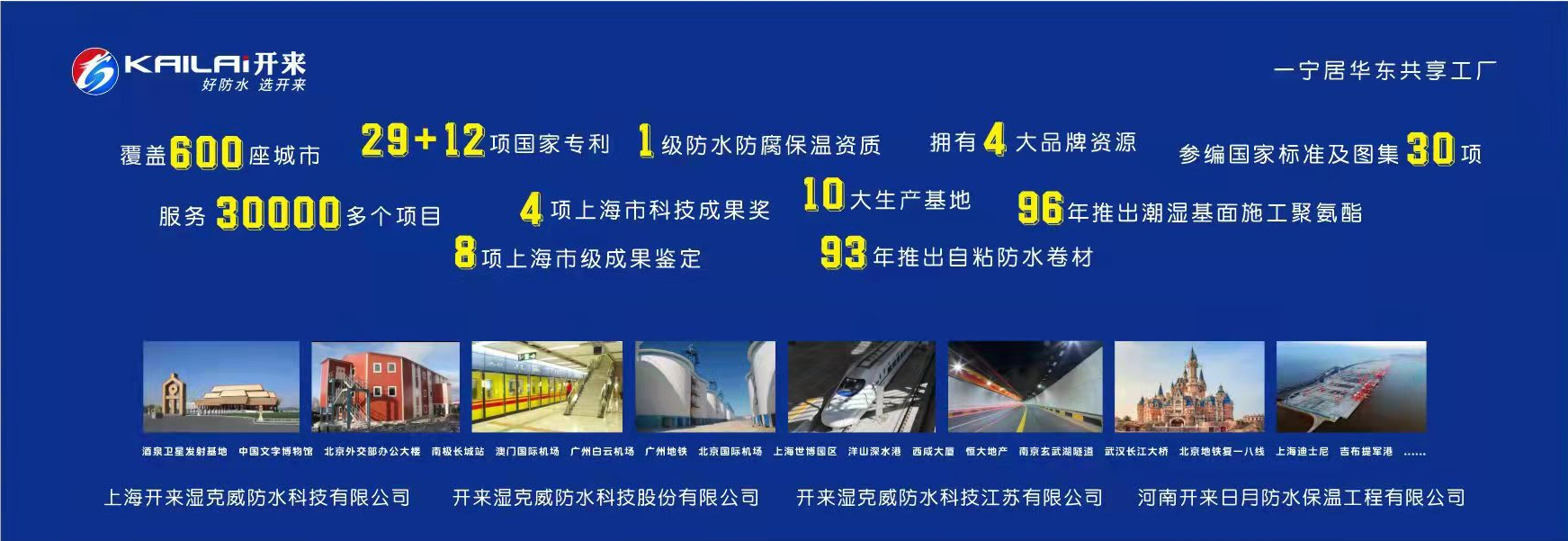 據悉,上海開來濕克威始建于1993年,十大ODM共享生產基地,年產改性瀝青卷材10000萬平方米,彩色瀝青瓦1000萬平方米,高分子材料50000萬平方米,防水系列涂料20萬噸。