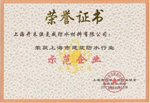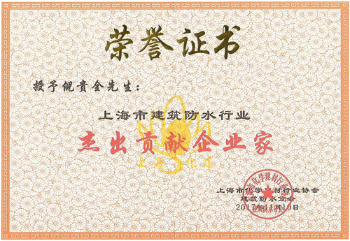 2017年11月11日,“上海市化學建材行業(yè)協(xié)會建筑防水分會”在上海召開,本次會上,上海開來濕克威防水材料有限公司榮獲上海市建筑防水行業(yè)示范企業(yè);上海開來濕克威防水材料有限公司董事長、中國建筑防水協(xié)會常務理事、上海化學建材協(xié)會防水分會副會長、河南省防水協(xié)會執(zhí)行會長倪貴全榮獲“上海市建筑防水行業(yè)杰出貢獻企業(yè)家”。