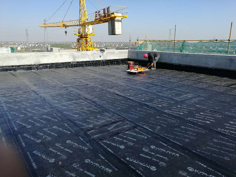 檢驗方法:是將1m2卷材平坦地鋪在找平層上,靜置3—4小時后掀開檢查,找平層覆蓋部位與卷材上未見水跡即可鋪設卷材。在這里主要闡述一下防水卷材的施工。