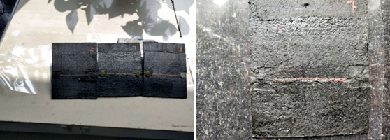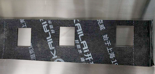 矩形試件尺寸(115±1)mm×(100±1)mm,試件均勻的在試樣寬度方向裁取,長邊是卷材的縱向。試件應距卷材邊緣150mm以上,試件從卷材的一邊開始連續編號,卷材上表面和下表面應標記。