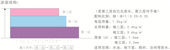 按“刮抹工法”的規(guī)定上料,若基面滲水嚴重,先在底部打引水孔降壓,然后自上而下施工,具體做法用干布擦干基面迅速用抹子上第一層料,若有漏水先別管它,待涂層硬化后(手壓不留指紋)將其噴濕(但不能有積水),再用抹子或刮板上第二層料,若局部仍滲水,再加一層,直到不漏;最后按封堵工法封堵引水孔。上料時要稍用勁來回多次使其密實,同時注意搭接。按具體工程掌握每層用料約為1-1.5kg/m2。